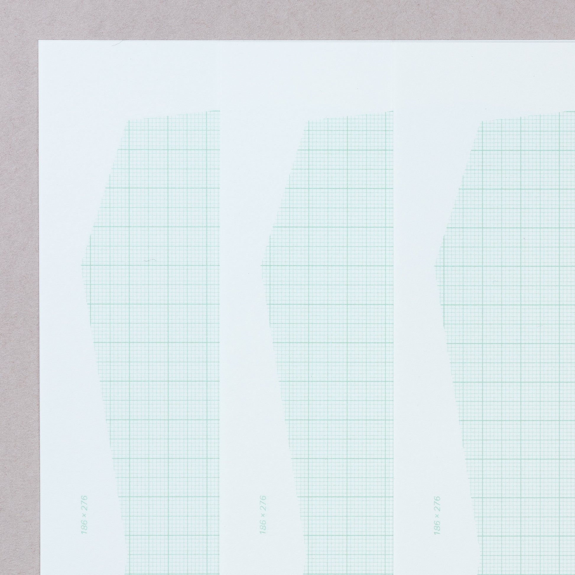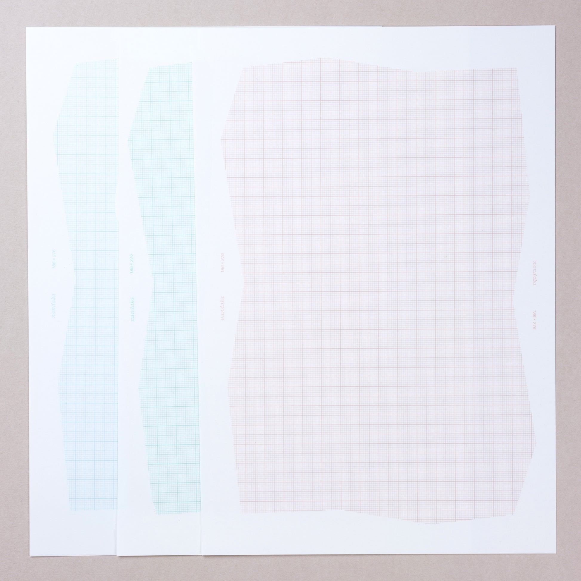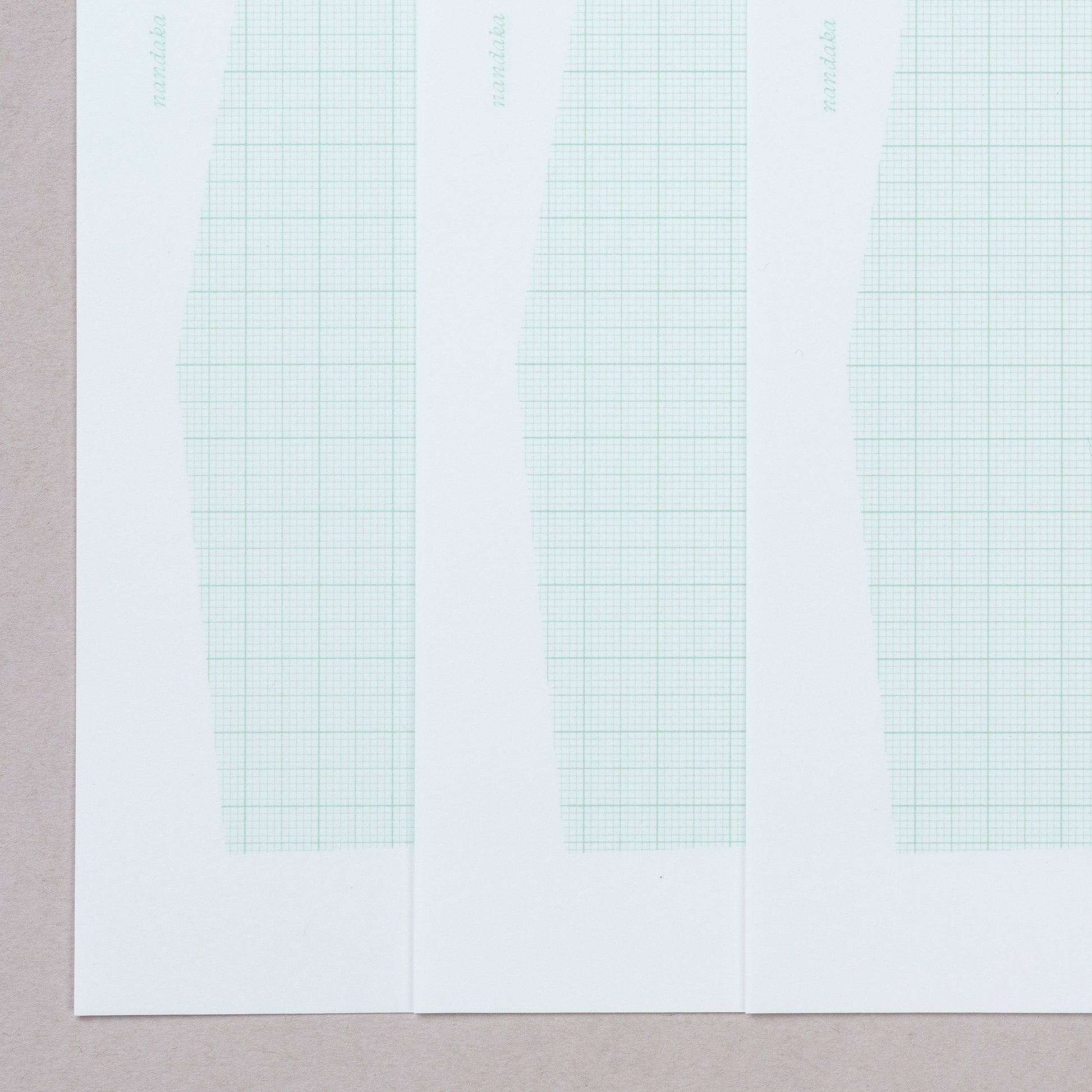 便箋は事務用品の方眼紙から着想を得てデザインしました。たくさん文章を書きたい時だけでなく、図や絵も自由にレイアウトして書きたい時にももってこいだと思います。