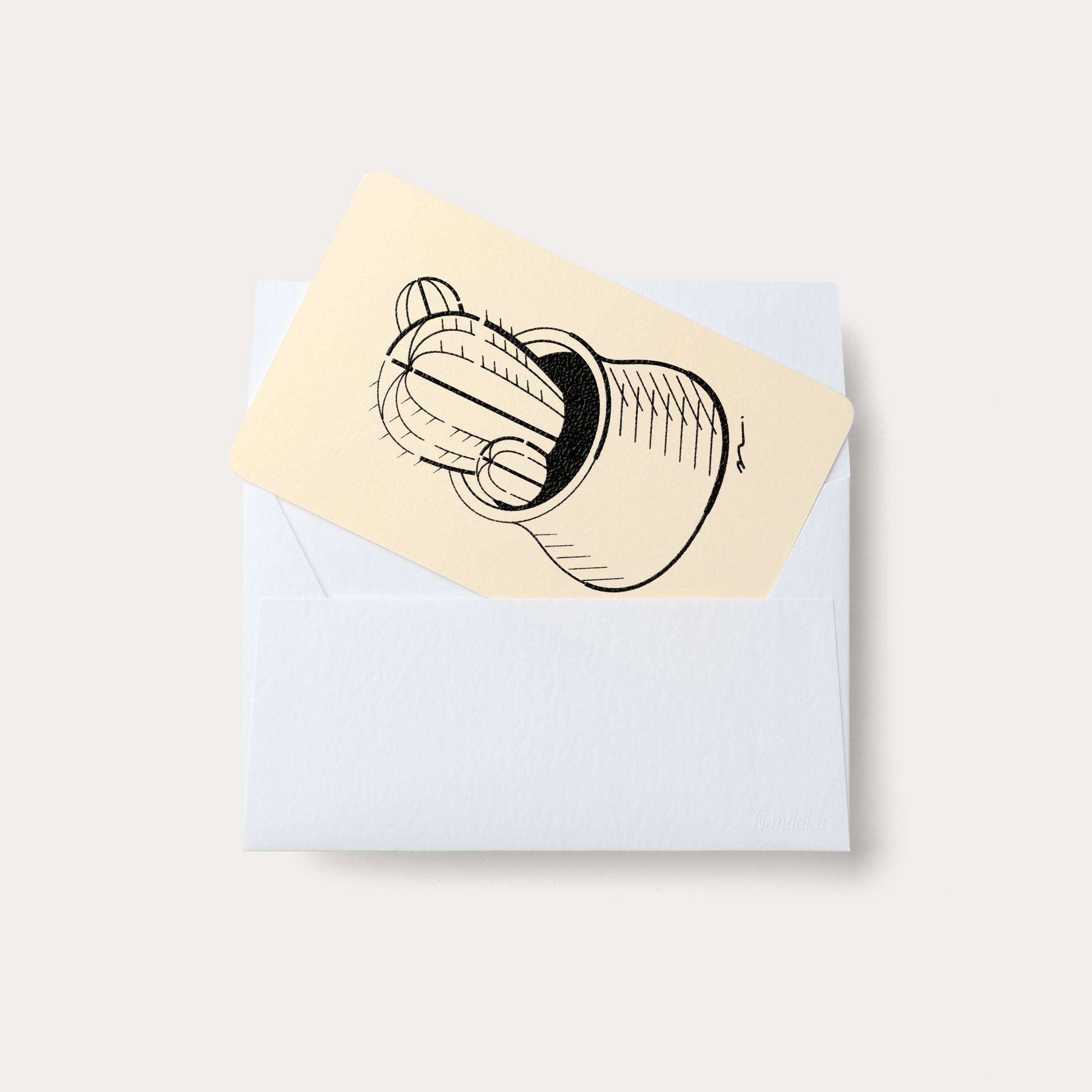 封筒は、もこもことゆるやかに波打つエンボス模様に加え、不思議としっとりした手触りが心地よい、他の紙にはない特長を持つ紙で作りました。カードを入れると中のグラフィックがうっすら透けます。