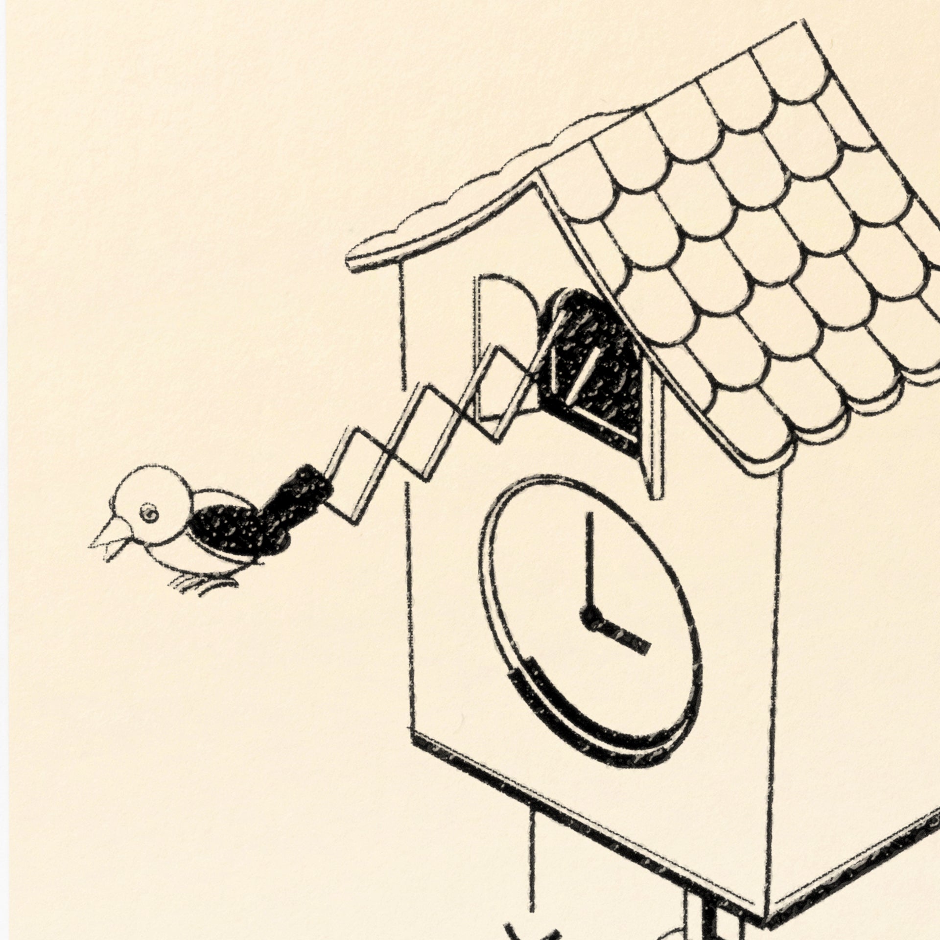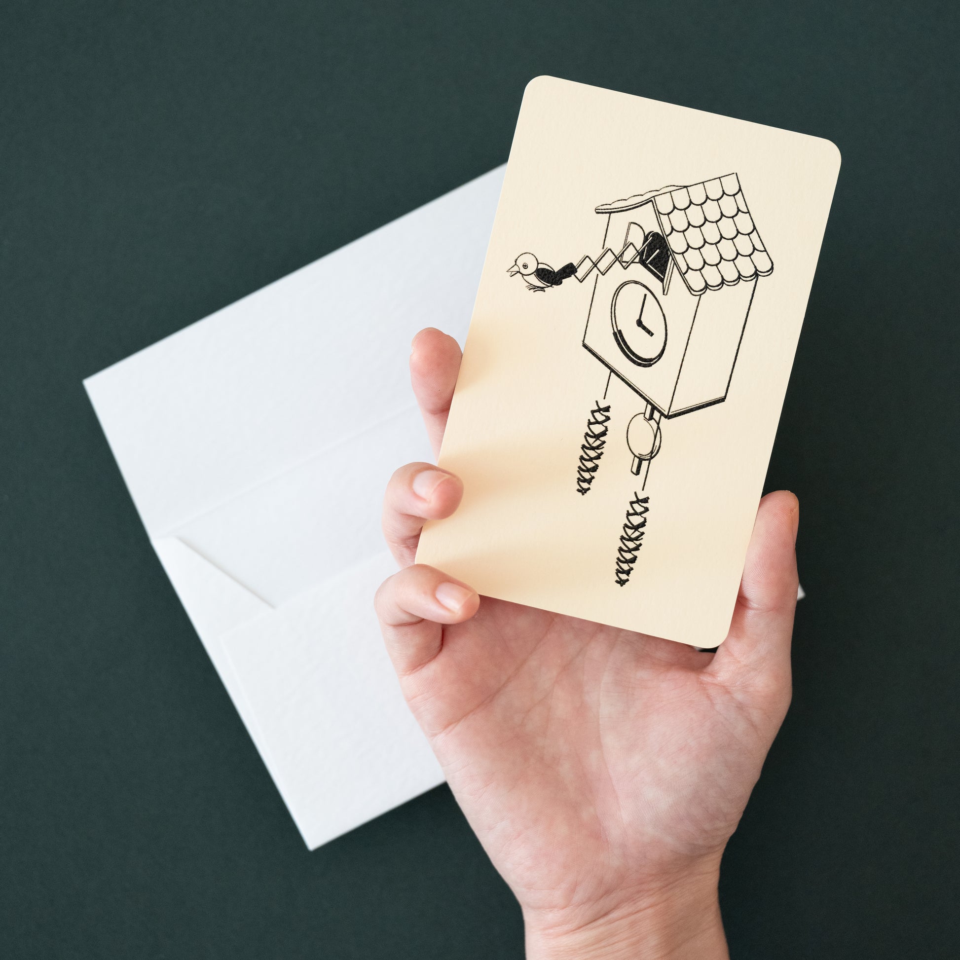 家の中での暮らしのお供になるものをテーマにしたHomeシリーズ。全31種の中から、こちらは、鳩時計(郭公時計)をモチーフにしたカードです。