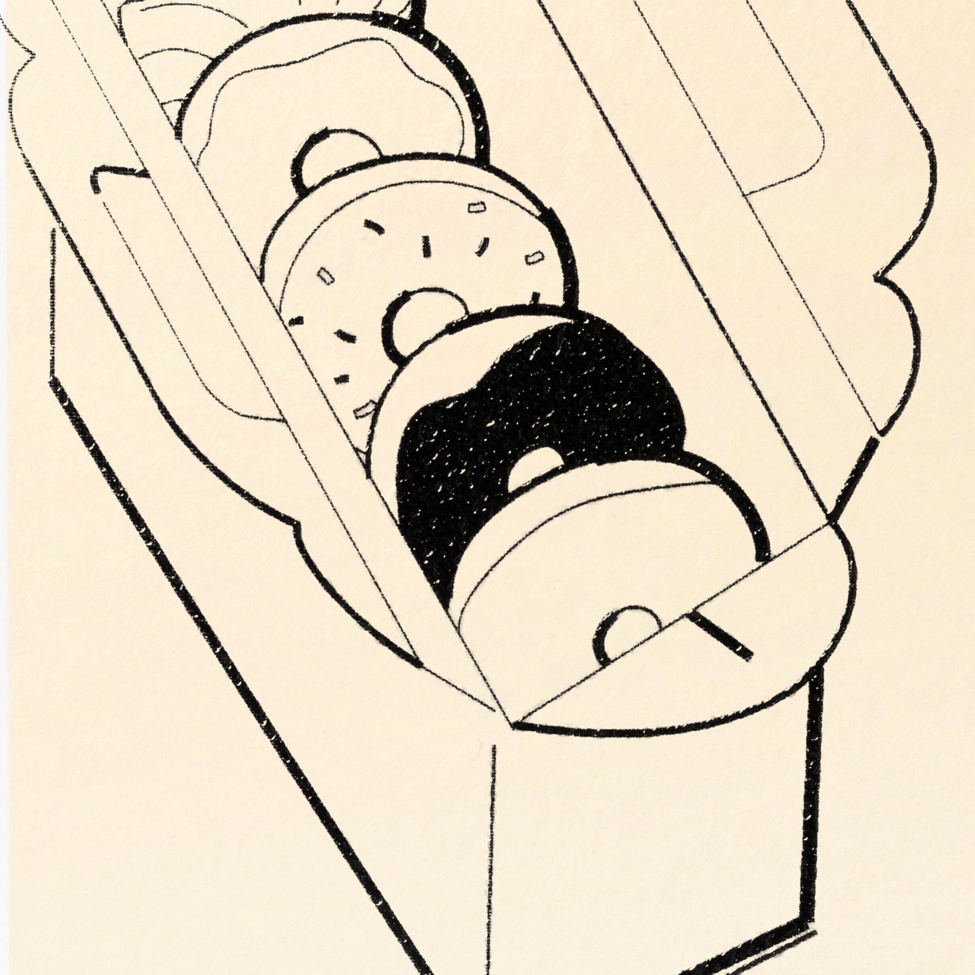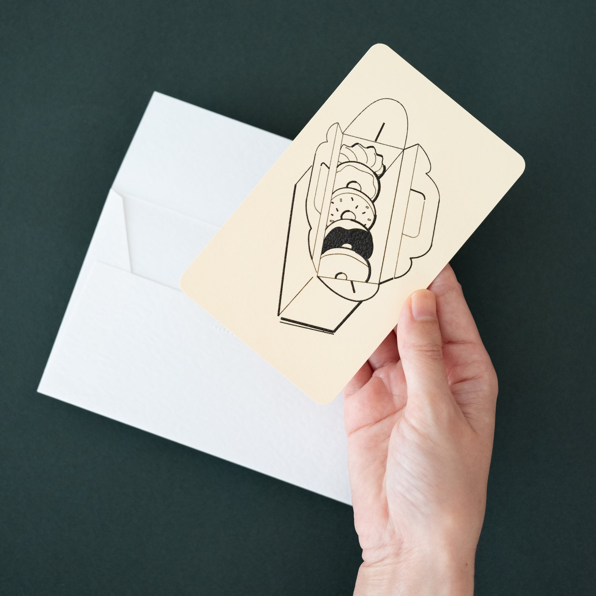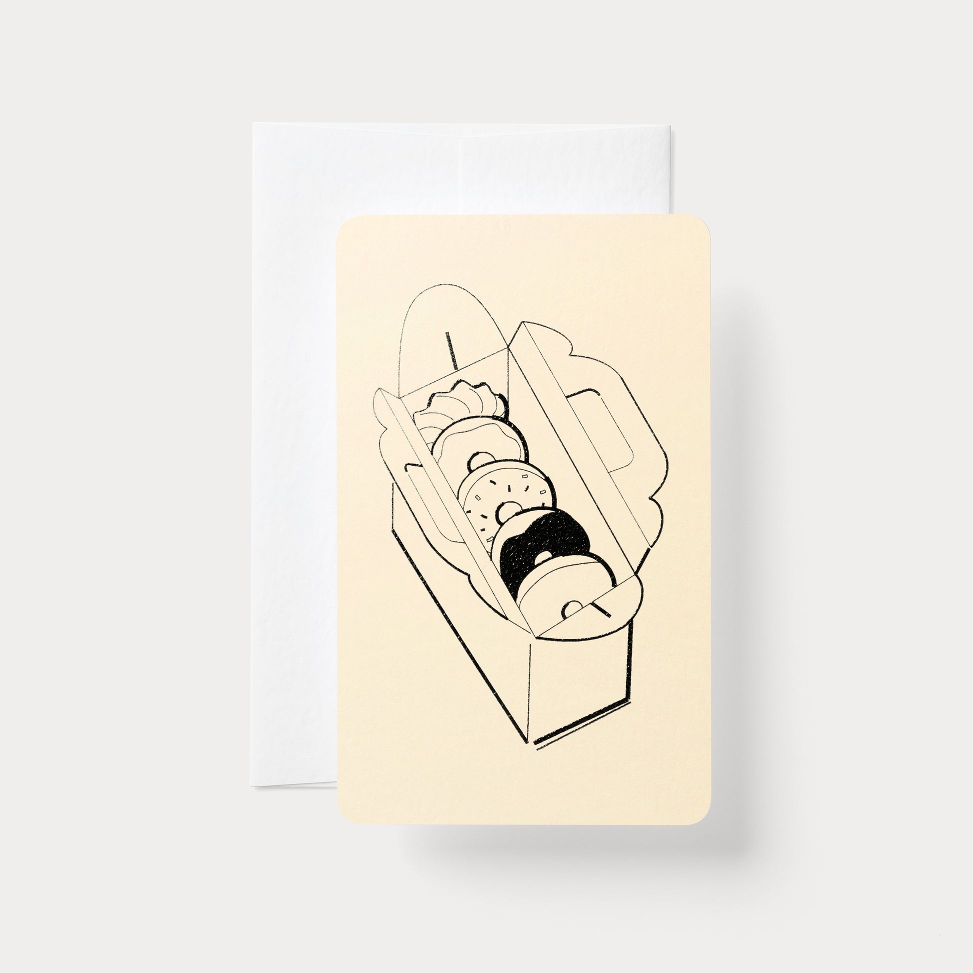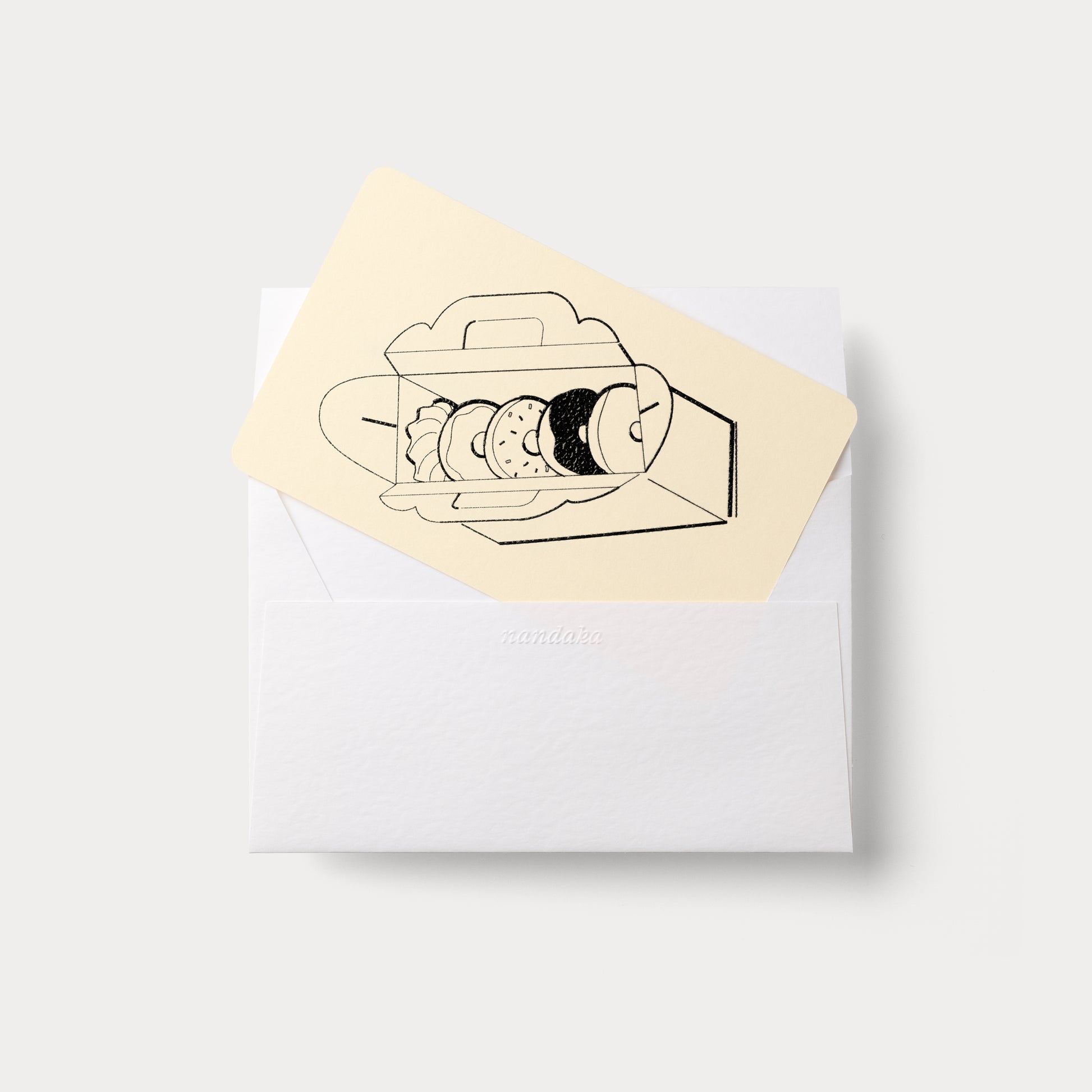 家の中での暮らしのお供になるものをテーマにしたHomeシリーズ。全31種の中から、こちらは箱入りドーナツをモチーフにしたカードです。