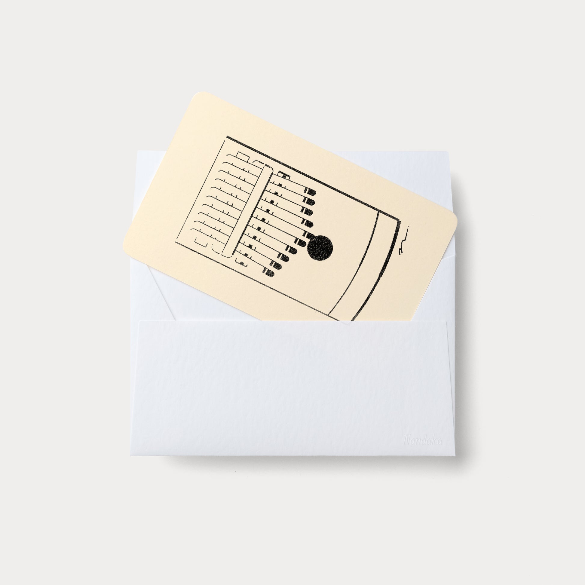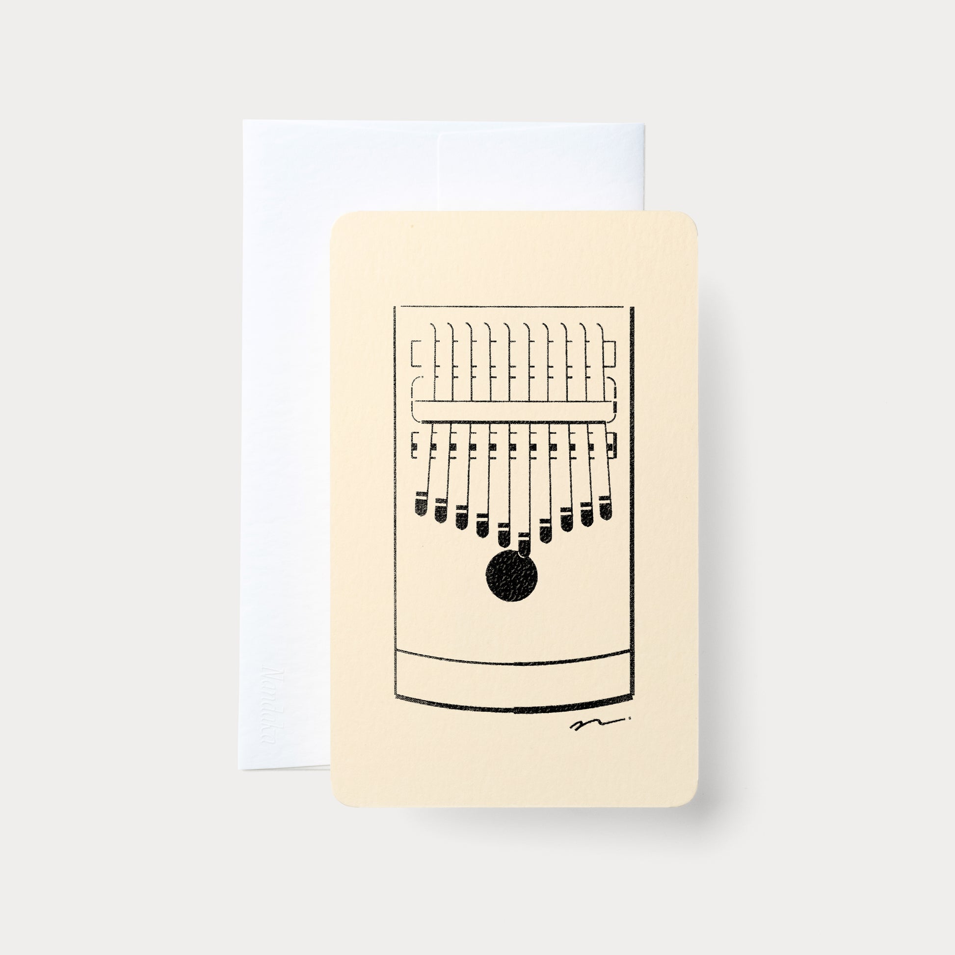 家の中での暮らしや休憩のお供になるものをテーマにしたHomeシリーズ。全31種の中から、こちらはカリンバをモチーフにしたカードです。
