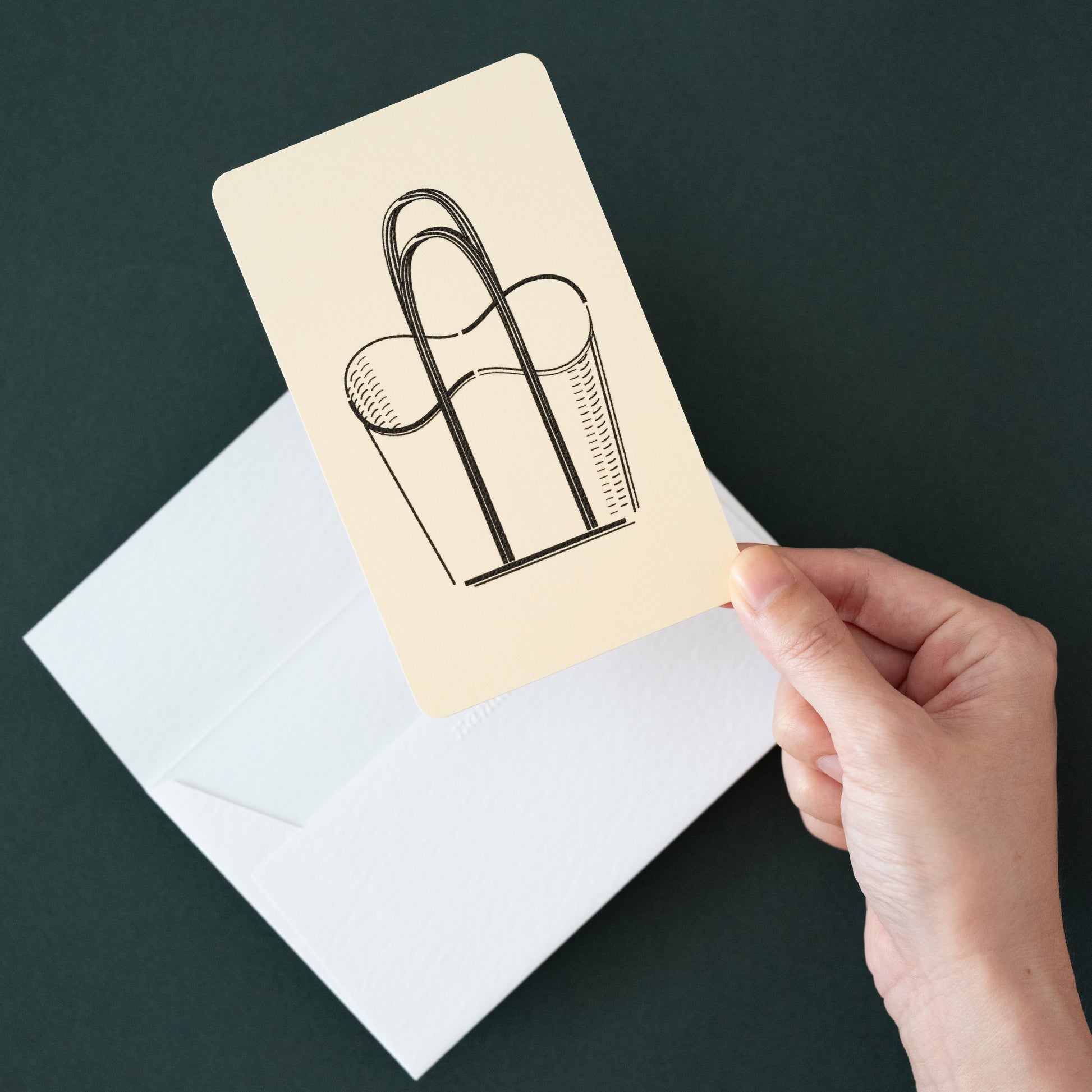 家の中での暮らしのお供になるものをテーマにしたHomeシリーズ。全31種の中から、こちらはかごバッグをモチーフにしたカードです。