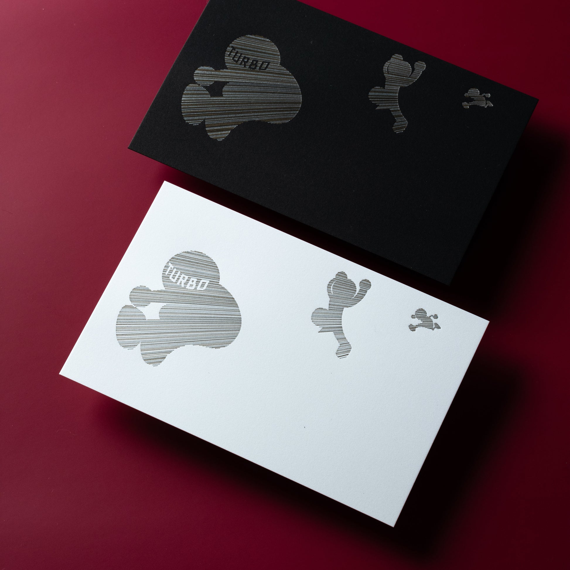 TURBOの文字の部分は逆に何も印刷せず、そのため紙の地がぷっくりと盛り上がり、飛び出して見えるのがチャームポイント。