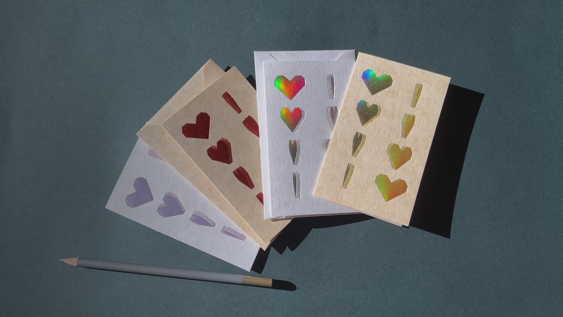 加工でご協力いただいたのは箔押しで随一の技術を誇るコスモテック(Birds Are Dinosaursシリーズでもお馴染みの!)。一部の隙もない精度で、繊細ながら力強いハートに仕上がりました。