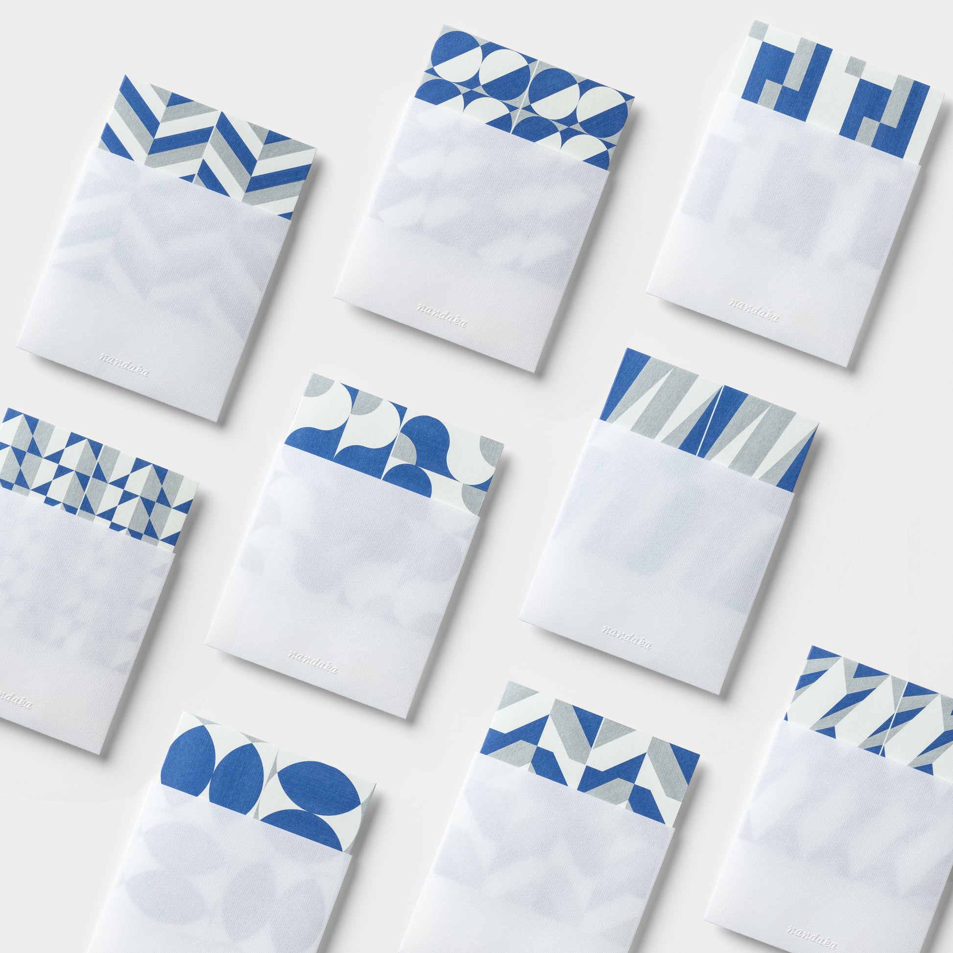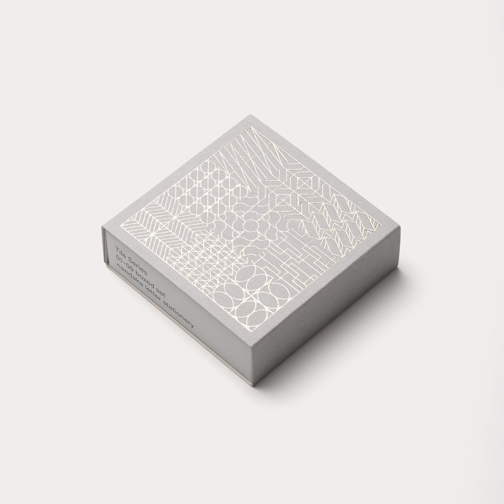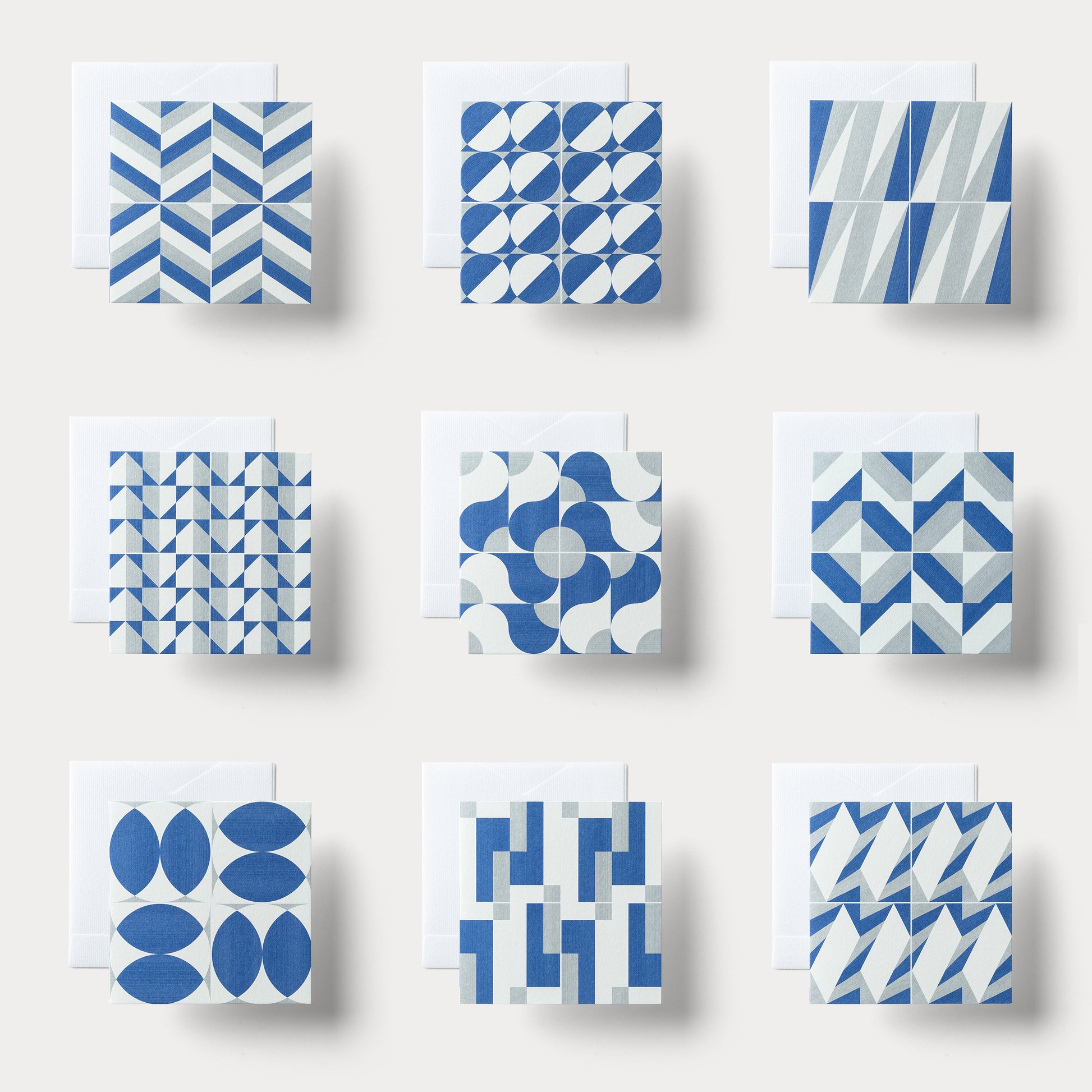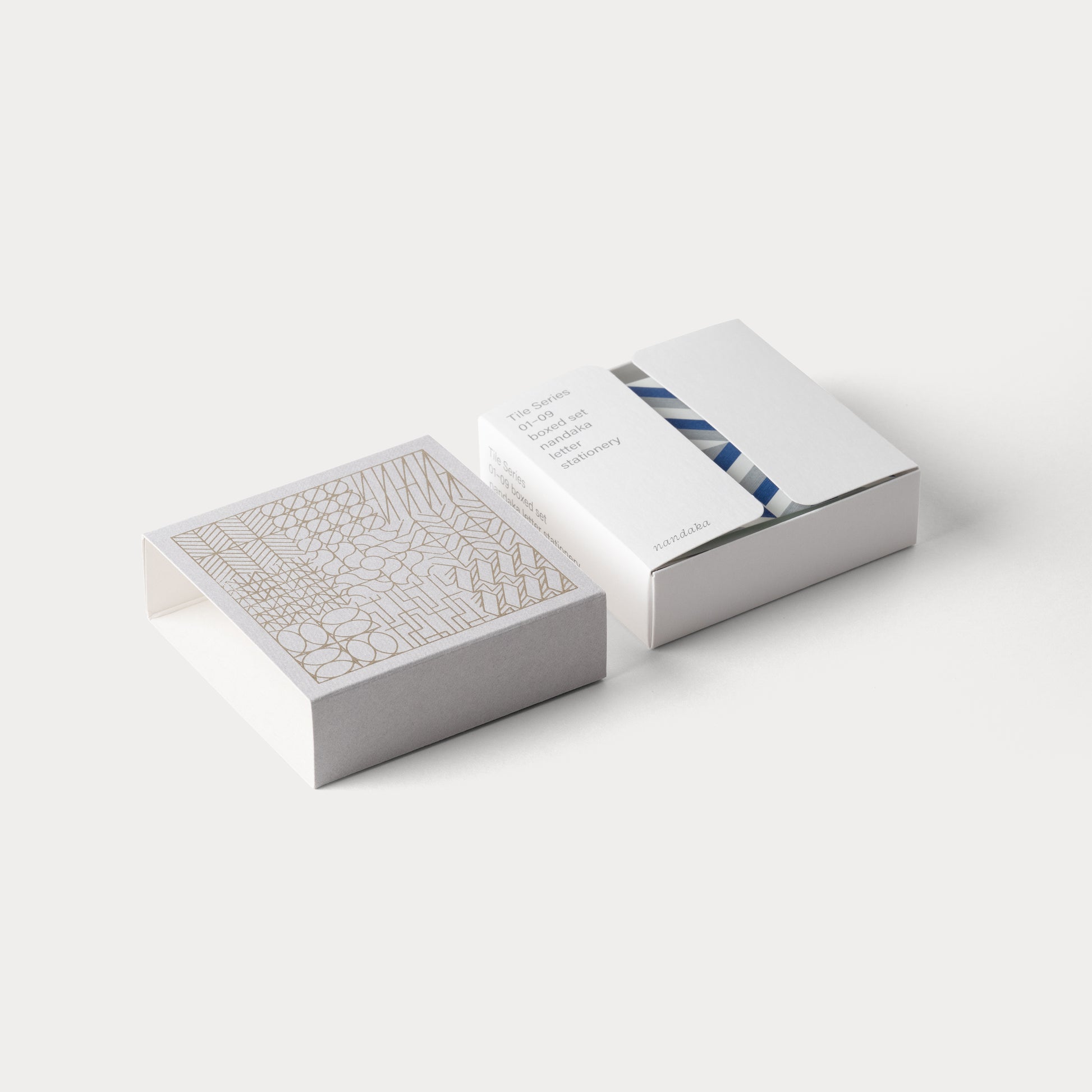 72.5mm四方の正方形という絶妙なサイズのカード。9種類の柄が1枚ずつ、共通の封筒も9枚入ったボックスセットです。