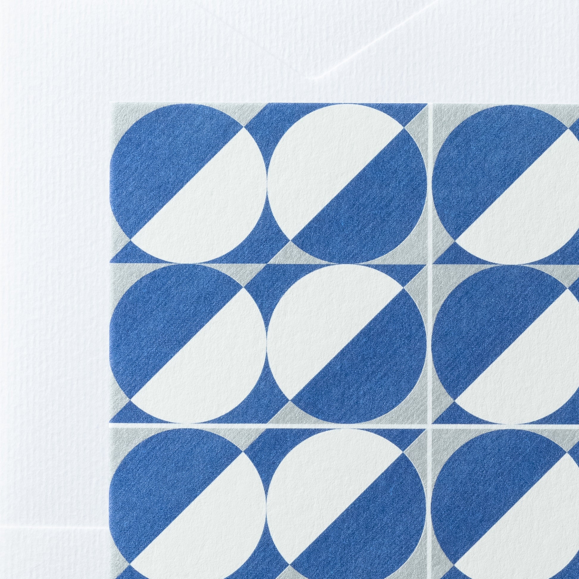 柄部分にはよく見るとわかるくらいの刷毛目状の細かい筋を入れており、それが青・銀・白の3色で印刷したシンプルな幾何学模様に深みを与えています。一方で、書く面はきれいな淡い水色です。筆記具を選ぶとすれば、黒だけでなく青系や銀のインクとも相性が抜群に良いと思います。