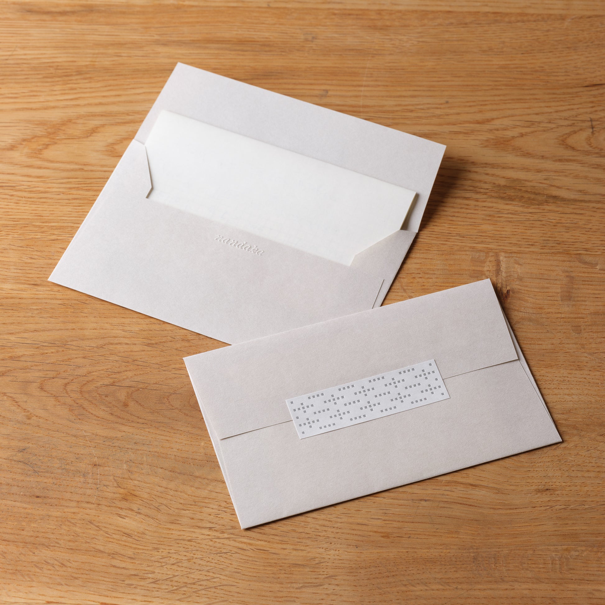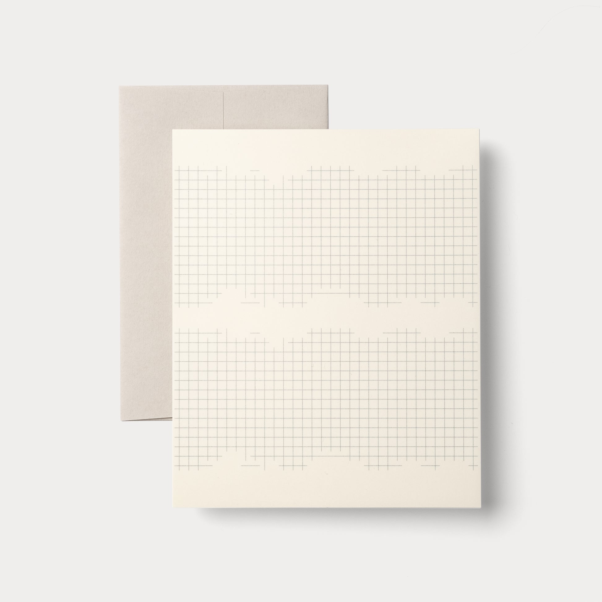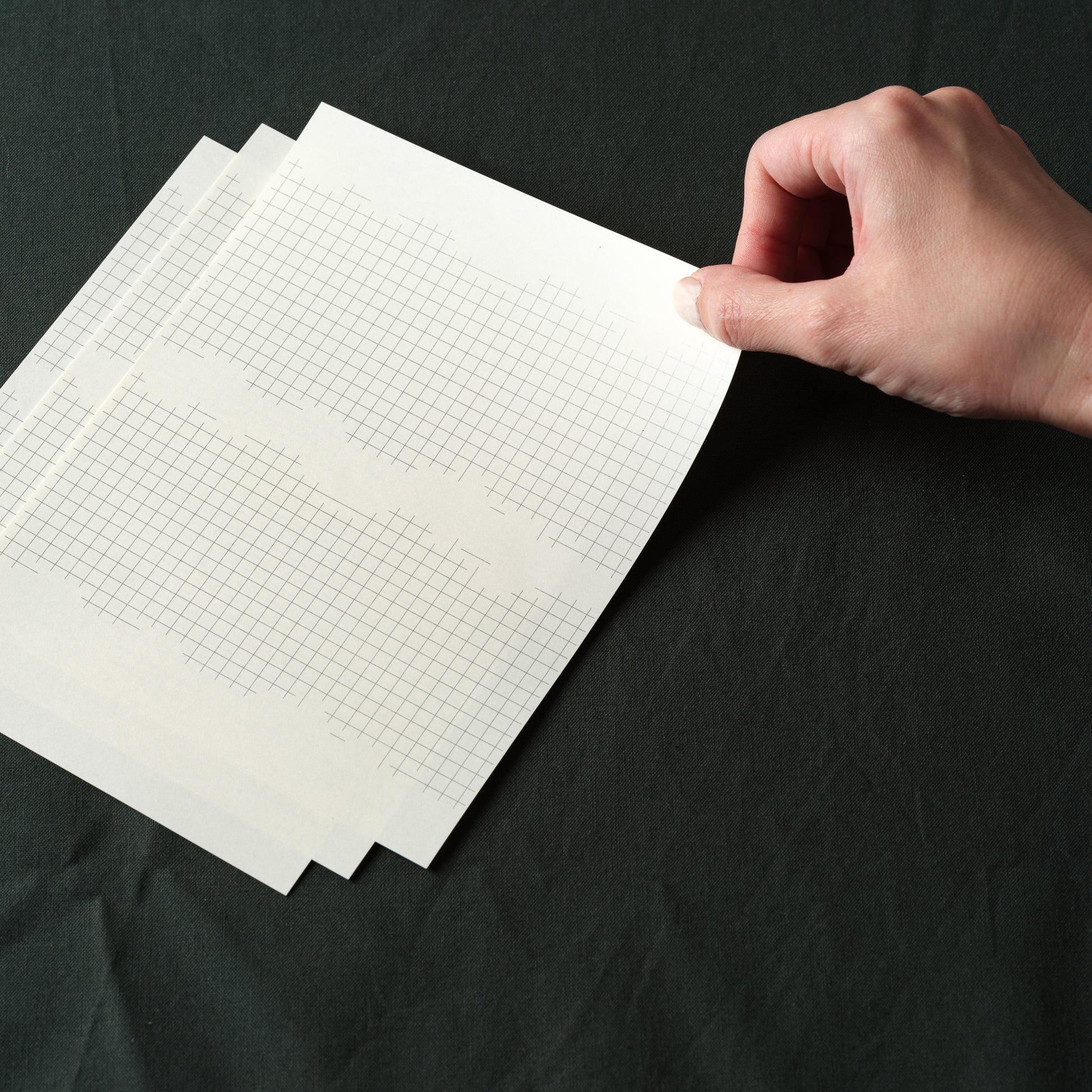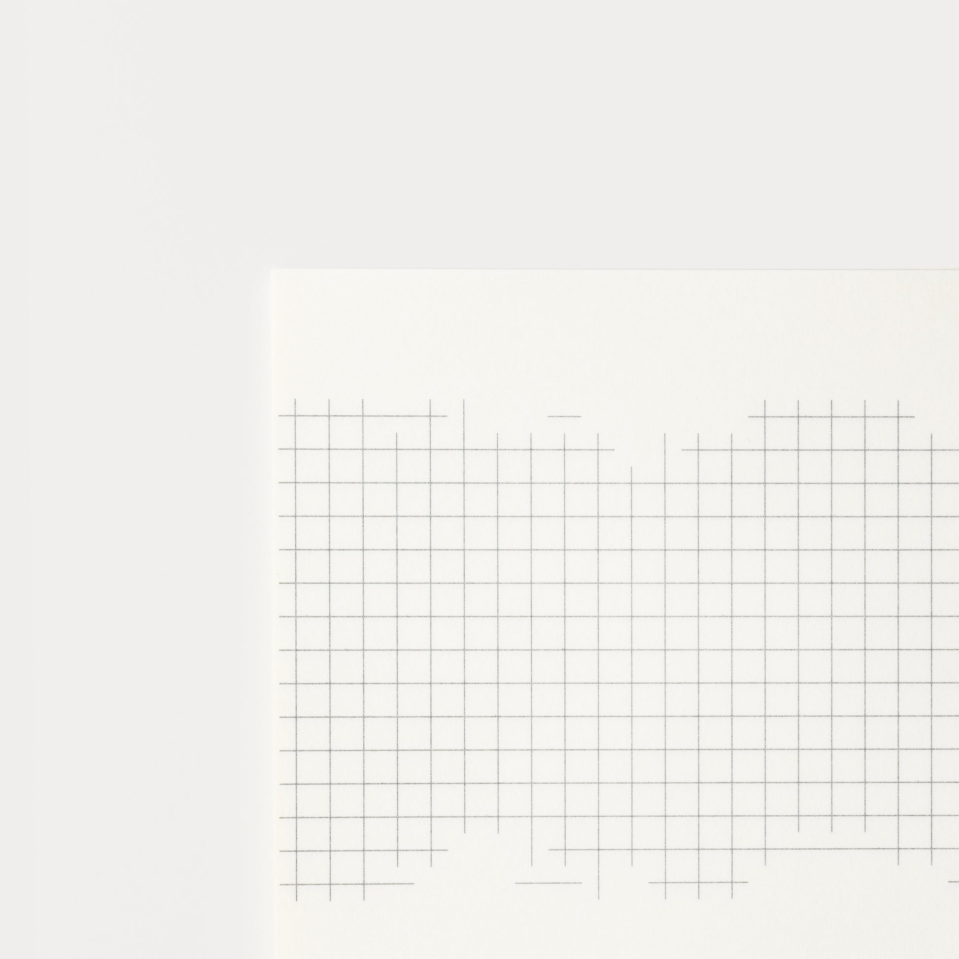 We designed this Grid #1 letter set inspired by the grid paper commonly used for notepads. The grid paper helps you to write and draw and is perfect for giving someone a simple message. Having kept how it works, we redesigned it in a style that stands as a letter set. As a feature, the shape looks like a sheet of grid paper with an eraser to create the marginal area. The middle margin, where you can take a breather, overlaps with the double-fold line. Together with the soft-grey envelopes and the subtly shiny stickers, the total look and feel are unadorned but with a magnetic presence.